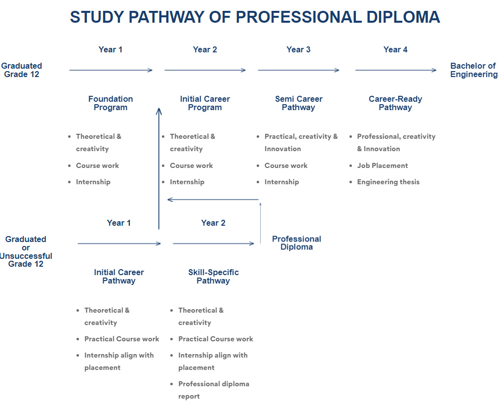 The Professional Diploma Program (PDP) at Cambodia University of Technology and Science (CamTech) is designed for a career-focused, accomplished associate degree or the equivalent. Student enrolled in the Professional Diploma will elevate their focus expertise to a professional level and learn critical skills in entrepreneurship, freelancing work, and other business-related skills.